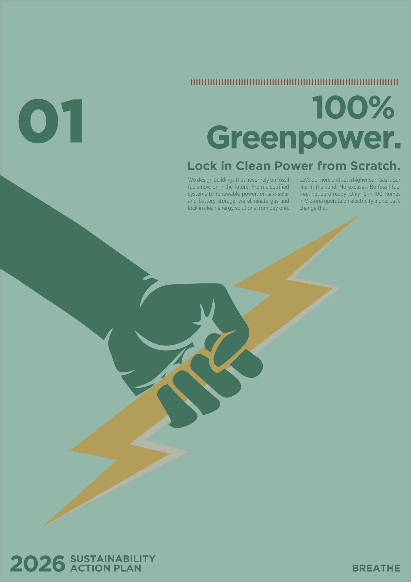 While the industry minimum is currently 7 NatHERS stars, our minimum standard is 7.9 NatHERS stars. This is not a set-and-forget, but must be a rolling target of improvement, year by year. Next year our minimum standard will be 8 NatHERS stars, as we ratchet an annual increase of 0.1, year on year. Exceeding the minimum is the only way to aim for climate resilience, while recognising the unavoidable gap between predicted performance and as-built reality.
